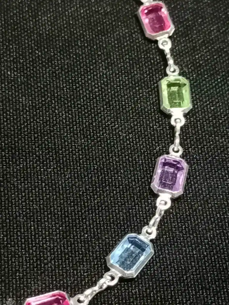 Pulsera de plata con cristales rectangulares de varios colores