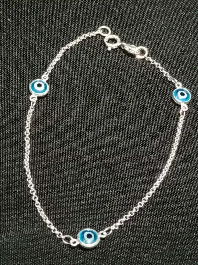 pulsera de plata con 3 ojos turcos protectores