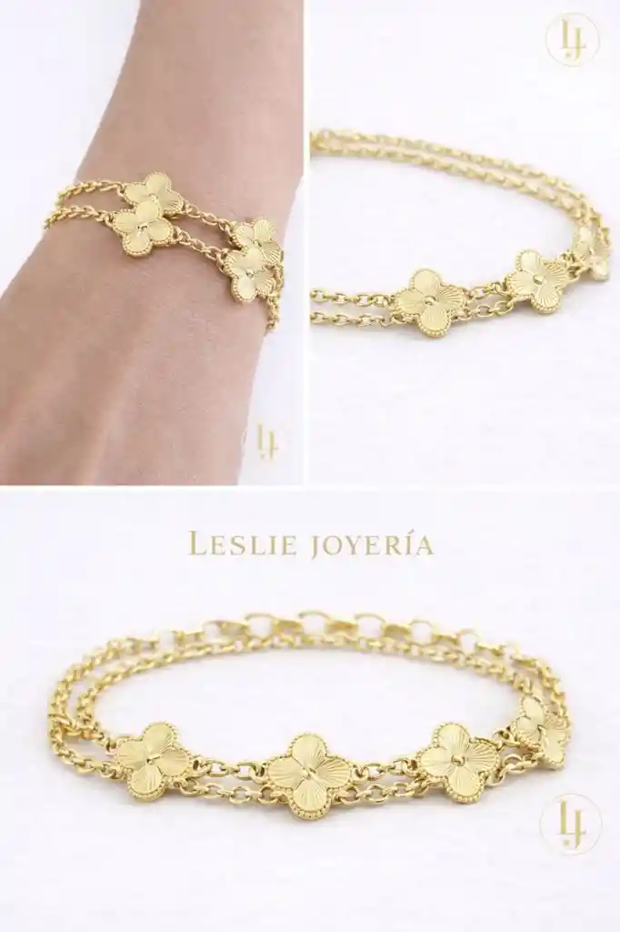 Pulsera doble diseño en tendencia laminado en oro de 14k mide 21cm.