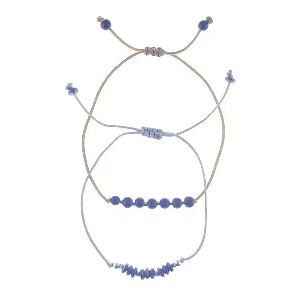 Pulsera ajustable Duo de piedra natural de ónix negro, bola lisa de 0,4 cm. Conectores de Goldfield y cordón dorado. Pulsera ajustable Duo de piedra natural de hematita, lenteja lisa de 0,4 cm. Conectores de Plata 925 y cordón plateado. Hematita: desintoxica el organismo. Alivia el dolor físico. Ónix Negro: protege contra las malas energías del ambiente y de otras personas. Plata: Es antibacteriana. Calma los nervios. Potencia la creatividad. Ayuda a liberar las emociones. Incluye: bolsa de regalo Cambios: 1 mes Garantía: 3 meses