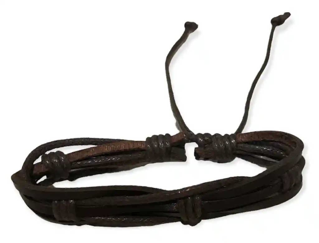 Pulsera Eco cuero Café 6 tiras expandible modelo único por unidad