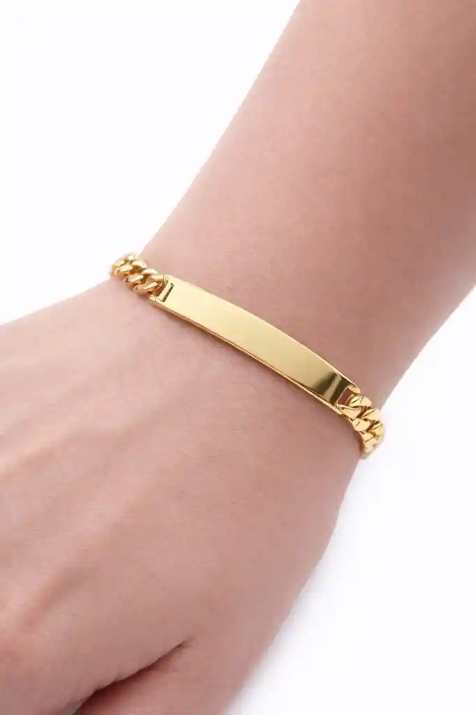 Pulsera diseño clásico laminado en oro de 18k mide 19cm.
