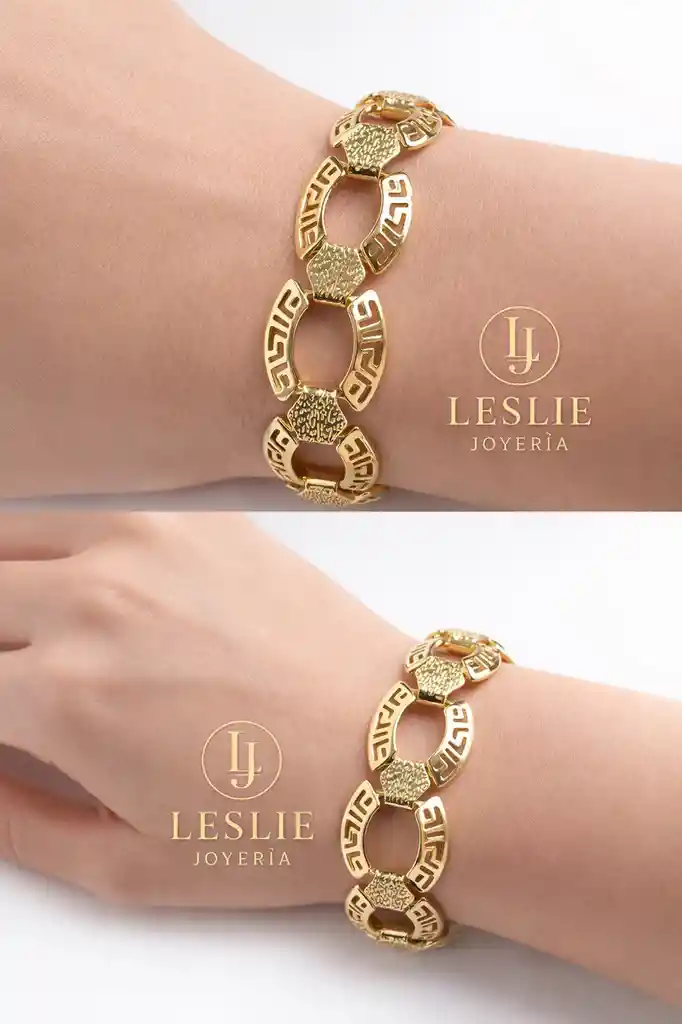 Pulsera com diseño elegante y moderno laminada en oro de 18k mide 19cm.