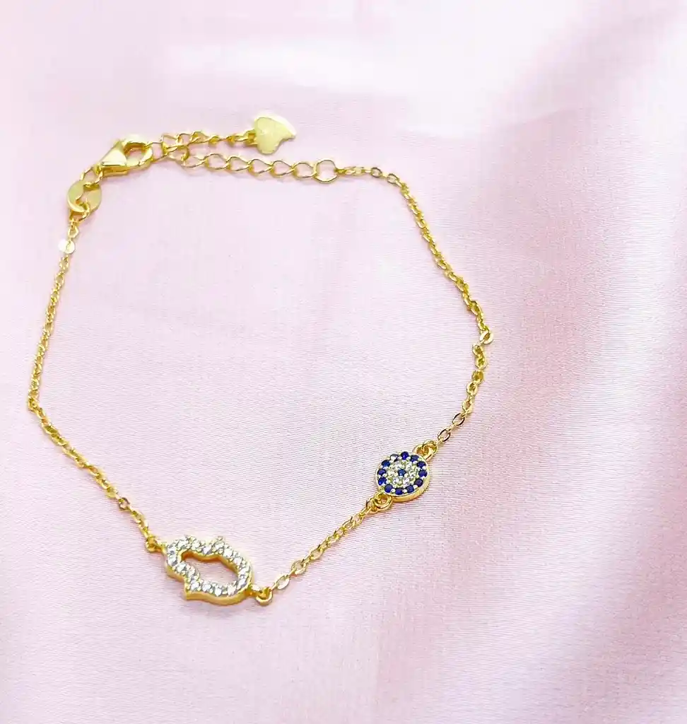 PULSERA ENCHAPADA EN ORO DE 18 KILATES CON APLICACIONES DE CIRCONES LIBRE DE NÍQUEL Y PLOMO HIPOALERGENICA
