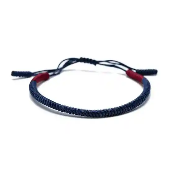 Pulsera de Hilo Azul y Burdeos Diseño Budista Ajustable Modelo Unisex. Accesorio Exclusivo Para la Activación de Energías Positivas y Protección. 15 cm (Diámetro) Ajustable