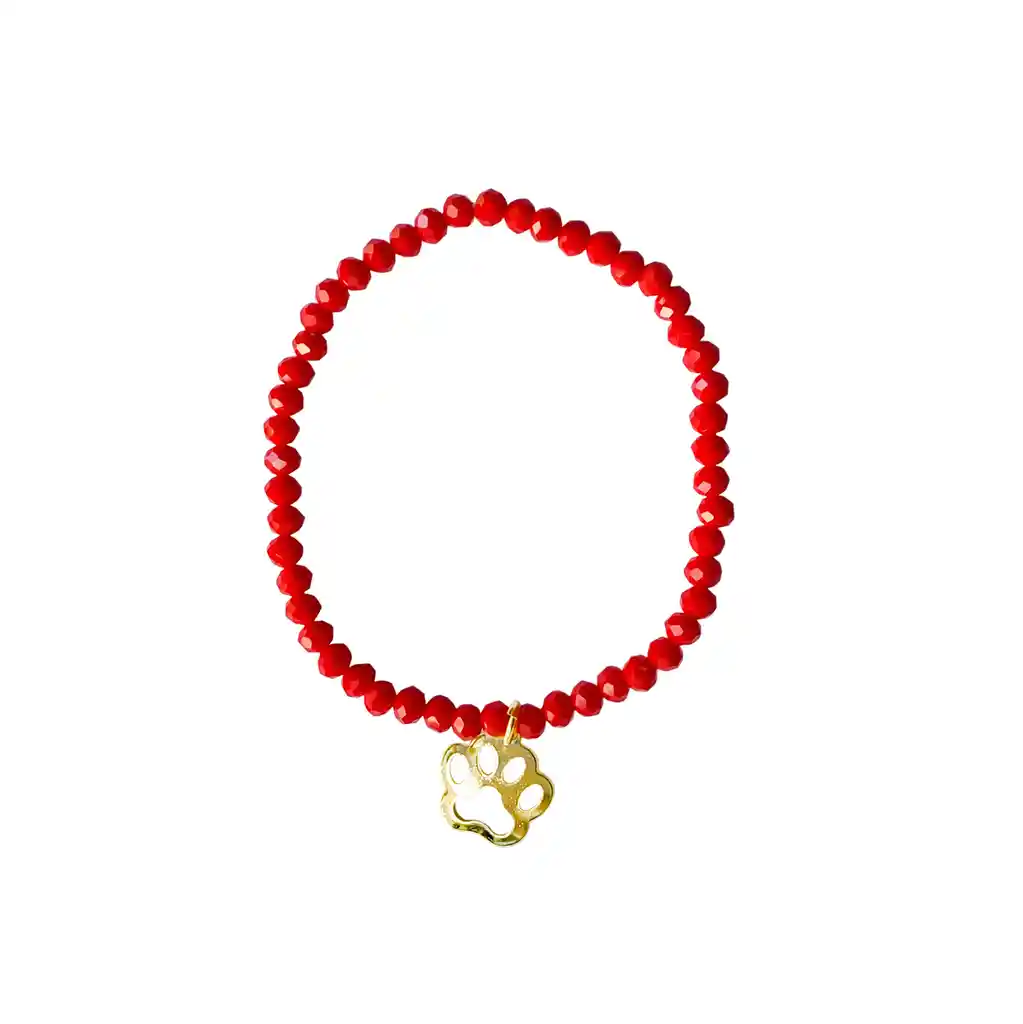 Lleva contigo el amor por los amigos peludos con nuestra encantadora Pulsera con Huella de Perro, engastada con cristales rojos y enchapada en Oro 18K. Cada huella es un recordatorio de la lealtad y alegría que los perros traen a nuestras vidas. Los cristales rojos aportan un toque vibrante y emocional. Sus medidas son un largo de 17cm. La huella es de 14mm de diámetro. Tiene un peso de 4,1 gr.