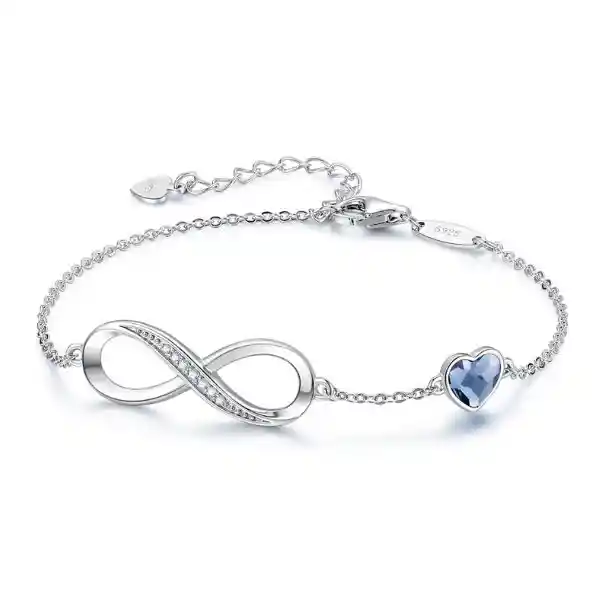 Pulsera hecha de Plata Italiana 925 y Cristales Austriacos. Color Cristales: Blanco y Azul. Largo dije: 2,6 cm Tamaño corazón: 0,7 cm Largo: 18,2 cm más 5 cm de extensión Libre de níquel y plomo. Incluye elegante caja.