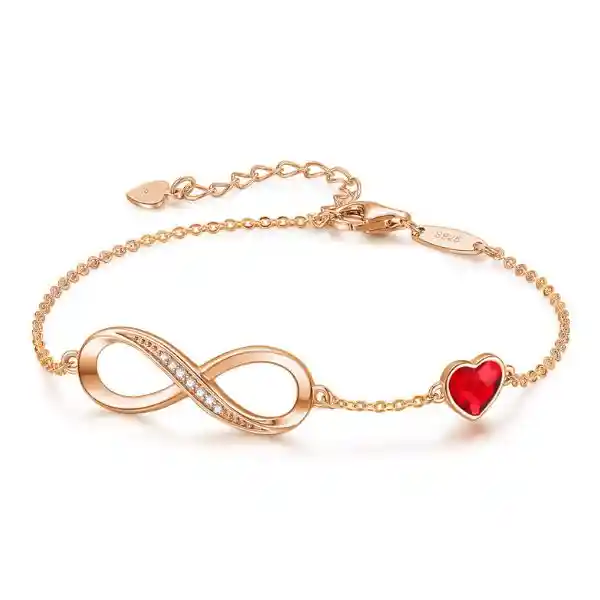 Pulsera hecha de Plata Italiana 925 y Cristales Austriacos. Bañada en Oro Rosado. Color Circón: Blanco y Rojo. Largo dije: 2,5 cm Tamaño corazón: 0,7 cm Largo: 18 cm más 5 cm de extensión Libre de níquel y plomo. Incluye elegante caja.