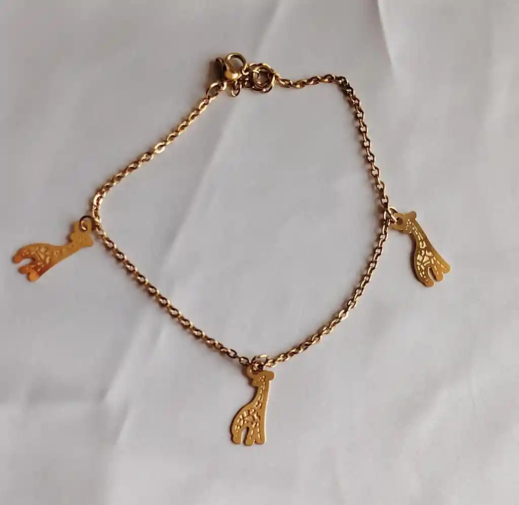 Pulsera de cadena bañada en oro con dijes de jirafa. Un diseño delicado y original que aporta un toque tierno y elegante al uso diario