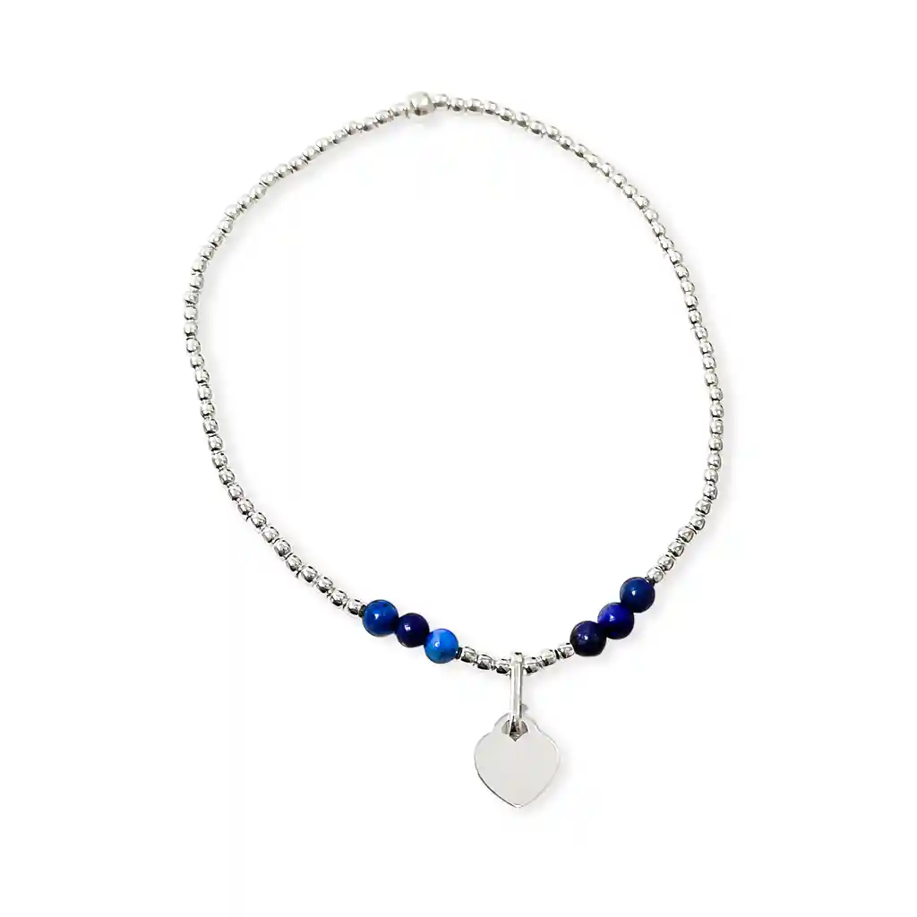 Una pulsera delicada y significativa que combina la energía del Lapislázuli natural con la elegancia de un pequeño corazón central y bolitas en Plata Fina 925 Elásticada. Perfecta para usar sola o acompañar otras pulseras, es ideal para regalar o llevar siempre contigo. Medidas: Largo total 16cm. Tamaño bolitas Plata 2mm. Tamaño Lapislázuli 3mm. Tamaño Corazón 8mm. Peso 1,9 gr.