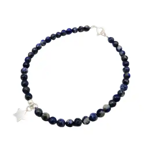 Hecha en plata 925 y piedra lapislázuli. Dimensiones: 18 cms largo aprox.