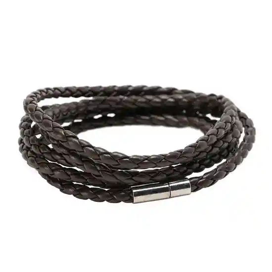 Pulsera Larga de Aproximadamente 50 (Cm). Diseño Elaborado en Cuero Sintético Color Café Trenzado. Ajustable a Forma y Tamaño de Muñeca. Broche Metálico a Presión. 185 cm (Diámetro) Ajustable