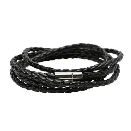 Pulsera Larga de Aproximadamente 50 (Cm). Diseño Elaborado en Cuero Sintético Color Negro Trenzado. Ajustable a Forma y Tamaño de Muñeca. Broche Metálico a Presión. 185 cm (Diámetro) Ajustable