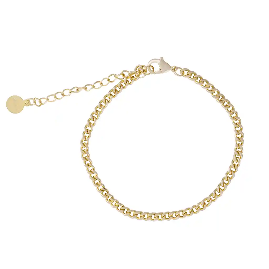 Sin duda esta pulsera se convertirá en una de tus favoritas. Esta fabricada en Baño de oro y la cadena esta compuesta por eslabones su totalidad. La pulsera además es ajustable. Medida: 24mm. ¡Todas nuestras joyas vienen con un packaging especial que te enamorará!