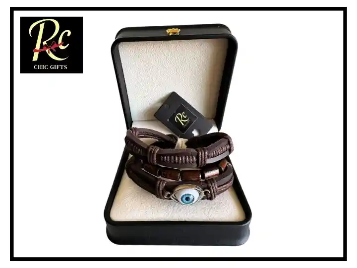"Protección y estilo en un solo accesorio. Esta pulsera marrón para hombre combina cuero, cuentas de madera y un poderoso dije de Ojo Turco, símbolo universal que aleja el mal de ojo, la envidia y atrae buena suerte. Su diseño artesanal transmite autenticidad y carácter, mientras el estuche de lujo con corona dorada eleva la presentación, convirtiéndola en el regalo perfecto para hombres con estilo propio. Fabricada en República Dominicana, fusiona tradición con estética contemporánea. Disponible en Regalos Chic, líderes en regalos corporativos y exclusivos. Regalo para hombre Pulsera con Ojo Turco Pulsera marrón cuero hombre Pulsera de protección masculina Accesorios de moda para hombre Regalos corporativos premium Pulseras fabricadas en República Dominicana Regalos Chic Chile"