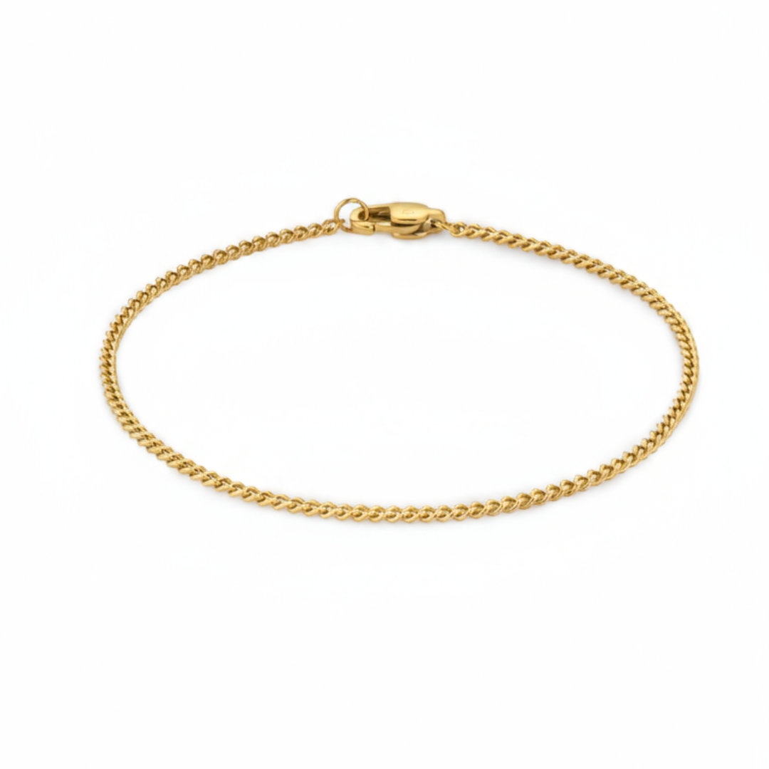 <p class="whitespace-normal break-words">La Pulsera Minimal Cuban Oro 2mm de Saint Venik está elaborada para durar y demostrar la <strong>gran confianza</strong> que llevas contigo. Un diseño clásico con <strong>eslabones cubanos dorados</strong> que hará que <strong>noten tu presencia y destaques</strong> en todo lugar.</p><p class="whitespace-normal break-words"><strong>Características:</strong></p><p class="whitespace-normal break-words"><strong>✓ Acero inoxidable 316L</strong></p><p class="whitespace-normal break-words"> <strong>✓ Enchapado de Oro 18k</strong> <strong>✓ Resistente al agua, sudor y calor</strong></p><p class="whitespace-normal break-words"><strong>✓ Hipoalergénico (sin piel verde)</strong></p><p class="whitespace-pre-wrap break-words">Grosor: 2mm.</p><p class="whitespace-pre-wrap break-words">Tamaño: 19cm</p><p class="whitespace-normal break-words">El cumplido preferido que han recibido nuestros clientes → <strong>"Qué linda se te ve...Me encanta que uses Accesorios"</strong></p>