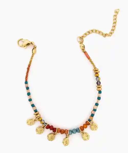 Pulsera Dorada Con Mostacillas de Colores y Monedas Machacadas.