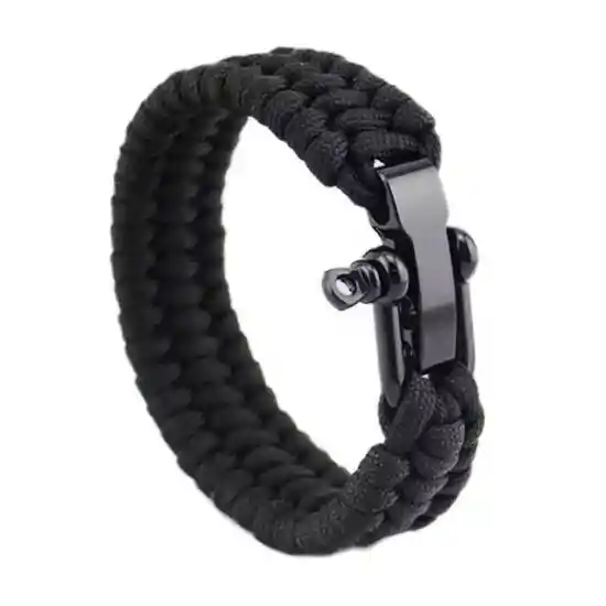 Pulsera Hecha de Cuerda Color Negro Con Broche Ajustable a la Muñeca de Tres Niveles en Acero Color Negro. 17 cm (Diámetro) Ajustable