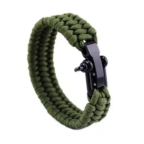 Pulsera Hecha de Cuerda Color Verde Con Broche Ajustable a la Muñeca de Tres Niveles en Acero Color Negro. 17 cm (Diámetro) Ajustable