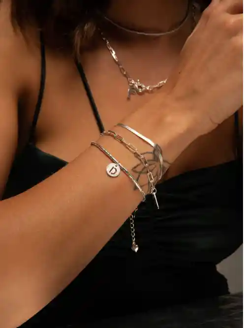 ¡Nos encanta que puedas personalizar tu Look! Elige tu letra y lleva tu nombre con actitud Cantarina (o de alguien que quieras mucho) Características: Material: Bronce enchapado con plata 925. Libre de níquel. Medida de la pulsera: 15cm + 5cm de extensor. Medida del colgante: 1cm.
