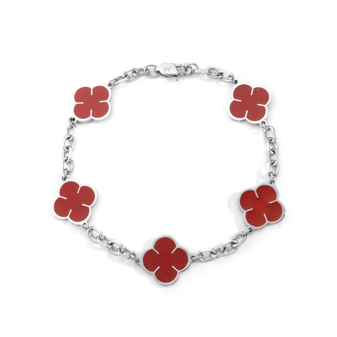 <p class="whitespace-normal break-words">La Pulsera Red Clover de Saint Venik está elaborada para durar y demostrar la <strong>gran confianza</strong> que llevas contigo. Un diseño sofisticado con <strong>tréboles rojos y acabado plateado</strong> que hará que <strong>noten tu presencia y destaques</strong> en todo lugar.</p><p class="whitespace-normal break-words"><strong>Características:</strong></p><p class="whitespace-normal break-words"><strong>✓ Acero inoxidable 316L</strong></p><p class="whitespace-normal break-words"><strong>✓ Tréboles rojos</strong></p><p class="whitespace-normal break-words"><strong>✓ Resistente al agua, sudor y calor</strong></p><p class="whitespace-normal break-words"><strong>✓ Hipoalergénico (sin piel verde)</strong></p><p class="whitespace-pre-wrap break-words">Grosor: 4mm. Tamaño: 19cm.</p><p class="whitespace-normal break-words">El cumplido preferido que han recibido nuestros clientes → <strong>"Qué linda se te ve...Me encanta que uses Accesorios"</strong></p>