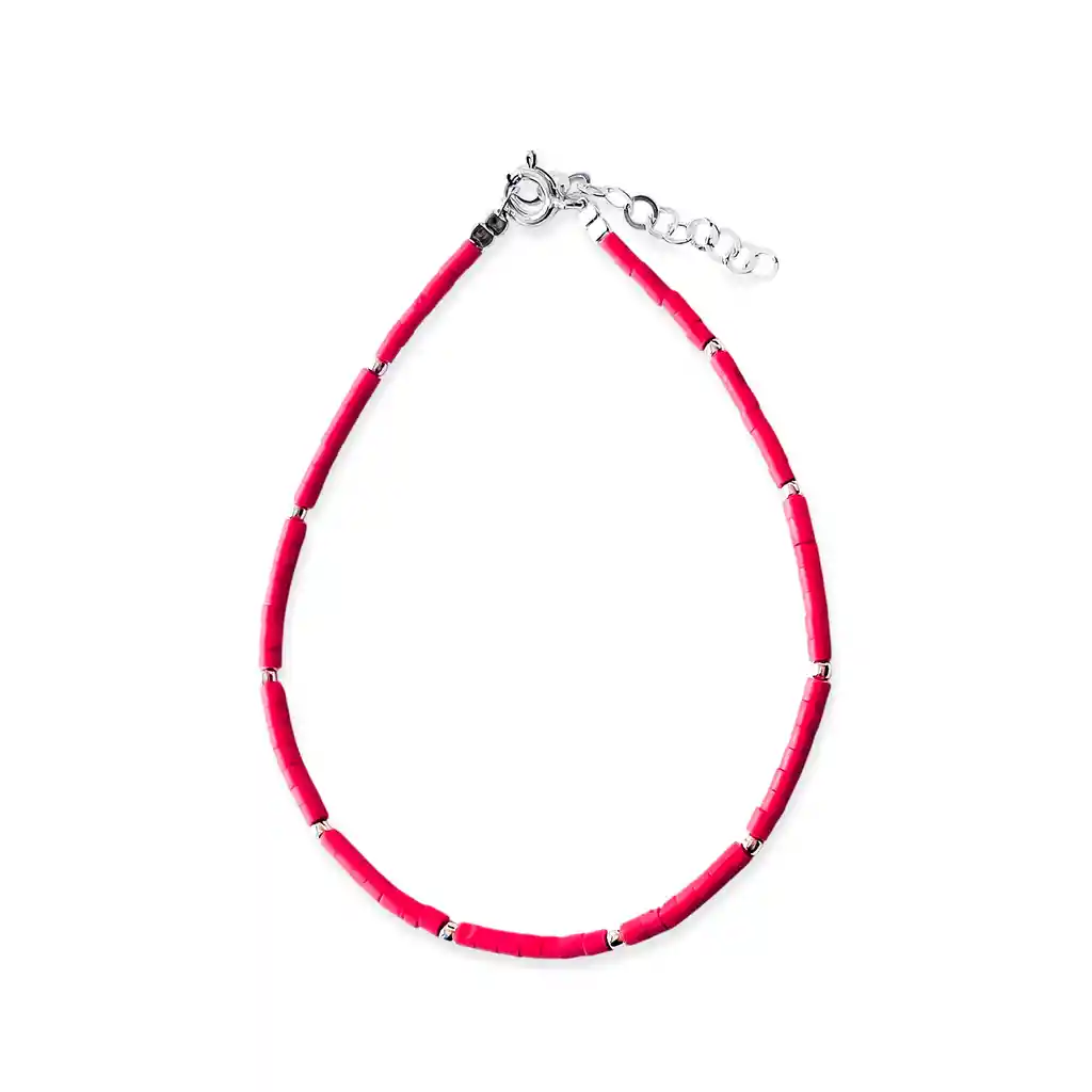Pulsera de Resina Roja y Plata Fina 925. Diseño delicado y moderno con un toque vibrante de color. La resina roja aporta energía y personalidad, mientras que la Plata Fina 925 garantiza durabilidad y brillo atemporal. Medidas: Largo total 18cm más 3cm de cadena de alargue para ajustar a la medida. Tamaño resina 2mm. Peso 1,1 gr.