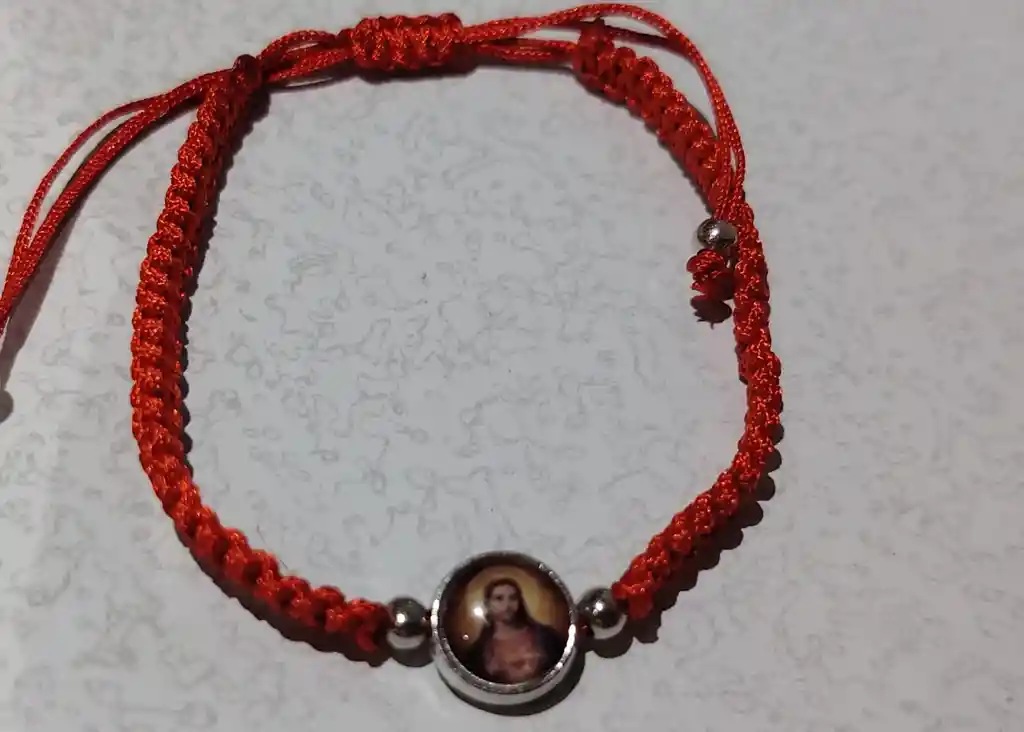 PULSERA DE HILO ROJO CON UN RELIGIOSO DIJE DE UNA MEDALLA PEQUEÑA DEL SAGRADO CORAZON DE JESUS