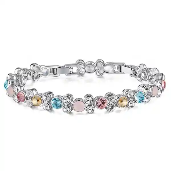 Pulsera hecha con Cristales Austriacos. Bañada en Oro Blanco. Largo: 18 cm. Libre de níquel y plomo. Incluye elegante caja. Metal base: Bronce.
