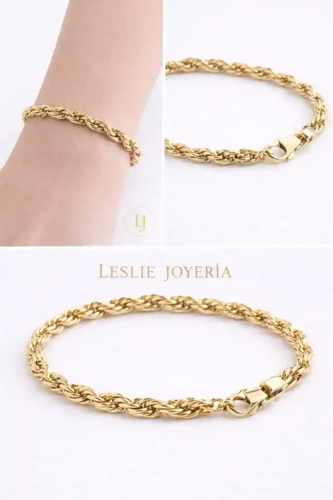Pulsera estilo turbillon laminado en oro de 14k mide 21cm.