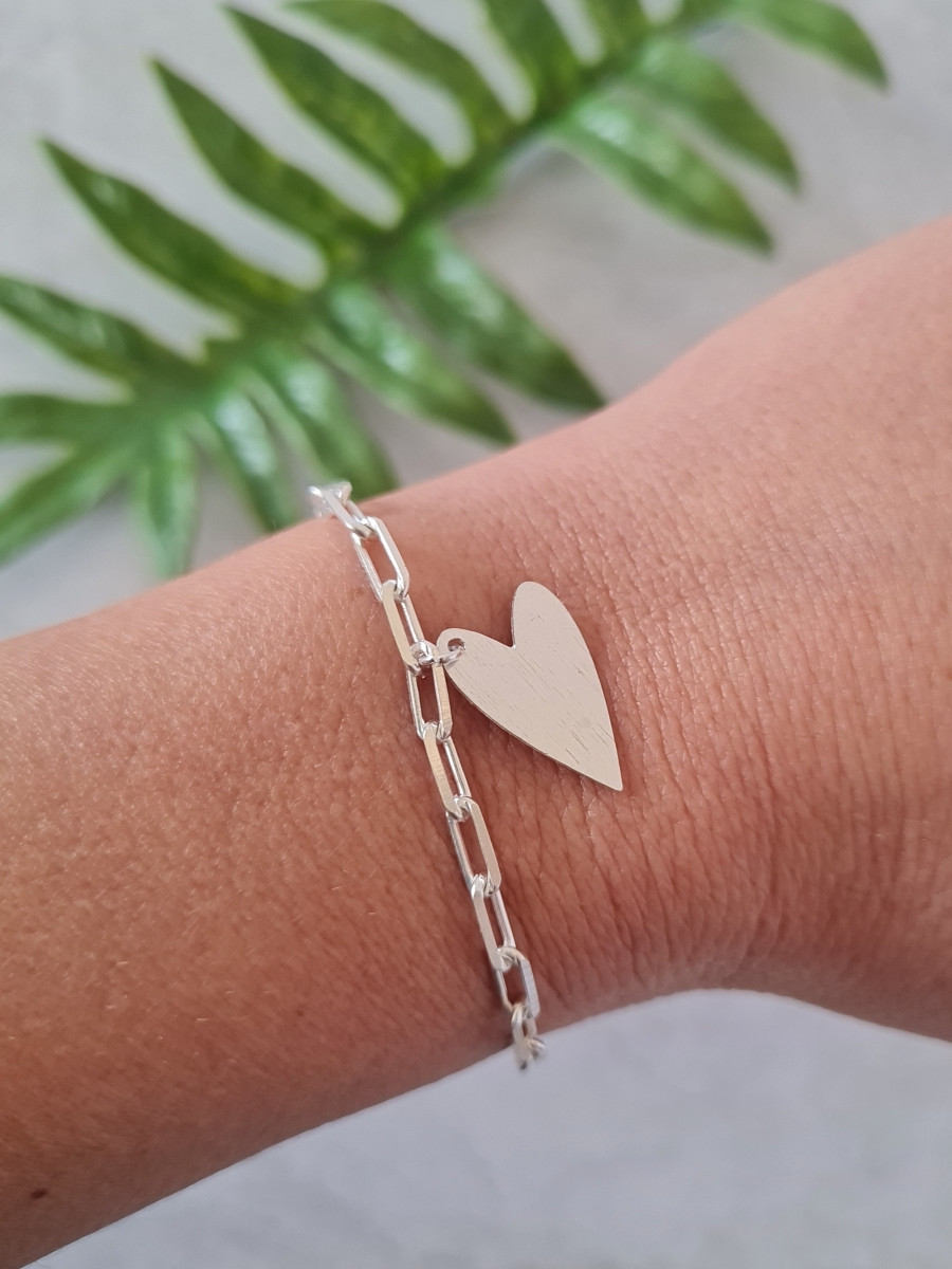 Esta pulsera es perfecta para autoregalos y regalos! La puedes usar sola para iluminar tu outfit o combinarla con otras pulseras como más te guste. Su corazón simboliza el amor que queremos que siempre esté presente en nuestras vidas. Es de cadena de eslabones bañada en plata, el corazón mide 1,7 cm y también es bañado en plata. La cadena mide 17 cm.