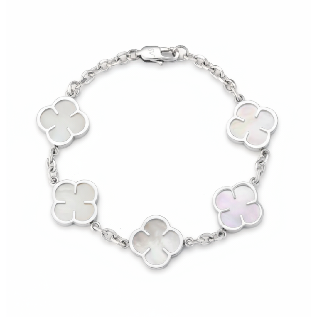 <p class="whitespace-normal break-words">La Pulsera White Clover de Saint Venik está elaborada para durar y demostrar la <strong>gran confianza</strong> que llevas contigo. Un diseño sofisticado con <strong>tréboles blancos nacarados y acabado plateado</strong> que hará que <strong>noten tu presencia y destaques</strong> en todo lugar.</p><p class="whitespace-normal break-words"><strong>Características:</strong></p><p class="whitespace-normal break-words"><strong>✓ Acero inoxidable 316L</strong></p><p class="whitespace-normal break-words"><strong>✓ Tréboles nacarados blancos</strong></p><p class="whitespace-normal break-words"><strong>✓ Resistente al agua, sudor y calor</strong></p><p class="whitespace-normal break-words"><strong>✓ Hipoalergénico (sin piel verde)</strong></p><p class="whitespace-pre-wrap break-words">Grosor: 4mm. </p><p class="whitespace-pre-wrap break-words">Largo: 19cm.</p><p class="whitespace-normal break-words">El cumplido preferido que han recibido nuestros clientes → <strong>"Qué linda se te ve...Me encanta que uses Accesorios"</strong></p>