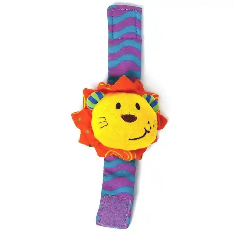 Pulsera/tobillera de león en suave tela con sonajero y velcro. Ideal para estimular la motricidad del bebé, además de la percepción visual, táctil y auditiva. Tocará diversas texturas y se divertirá mirando sus entretenidos colores y escuchando su sonido. Contiene una pieza de tela de 19 x 8 cm aproximadamente.