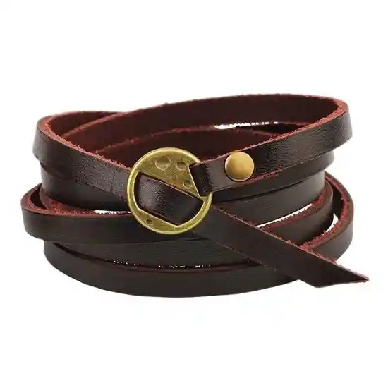 Pulsera Casual de Cuero Largo Liso Cuenta Con Broche Sencillo. Diseño Ajustable a Forma y Tamaño de Muñeca. Largo Aproximado de 1.01 (M) 16 cm (Diámetro) Ajustable