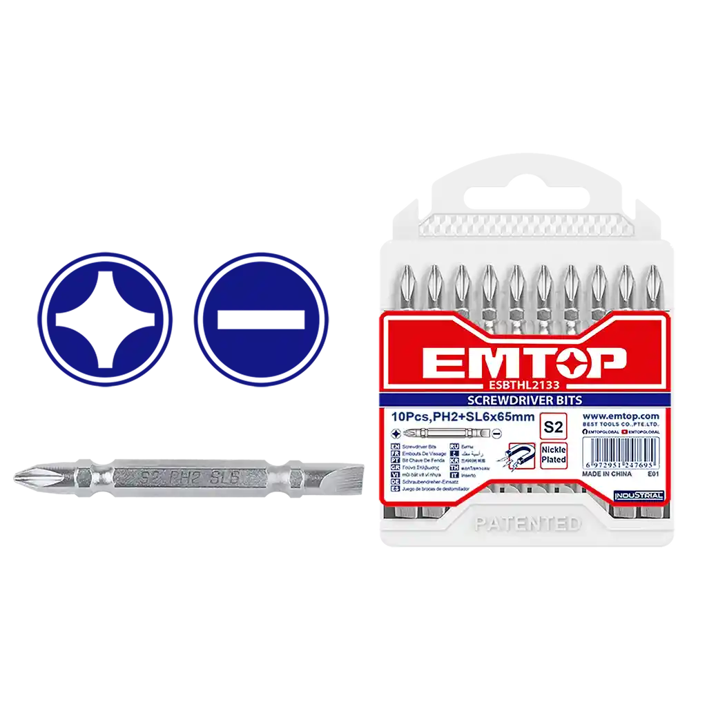 PH2 + SL6.0 65mm, 10pcs / set acero industrial S2 poco extremo doulble Niquelado megnetic Embalado por la caja plástica