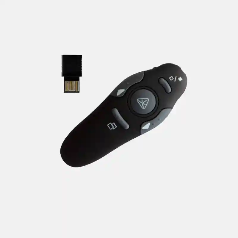 > Plug and Play USB > Material Plástico > Laser Rojo > Funciones: página arriba/ abajo, ESC / F5, pantalla en blanco, minimizado. > Compatible con todos los Sistemas Operativos > Compatible con: Word, Excel, Powerpint, ACDSee, Acrobat Reader y más. > Utiliza 1 pila AAA (no incluida)