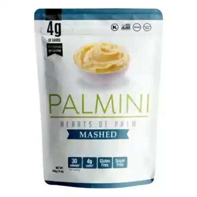 Puré De Palmitos, 338g. Palmini. Palmini busca reinventar la forma tradicional de cocinar reinventando productos clásicos pero utilizando como principal ingrediente el palmito, que es un vegetal lleno de vitaminas y minerales, además de ser una gran fuente de fibra. Este producto no contiene gluten ni azúcar, y tiene un muy bajo aporte calórico. Es de sabor suave por lo que adoptará el sabor de cualquier salsa o condimento con la que se prepare, dando múltiples opciones para utilizarla en la cocina. Apto para Veganos. Sin gluten. Ingredientes: Palmitos en rodaja, sal de mar natural, ácido cítrico. Mantener en un lugar fresco y seco.
