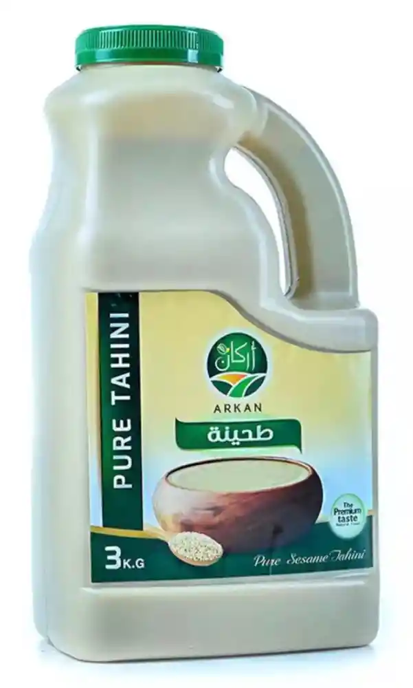 DESCRIPCIÓN Información del Producto Tahini Arkan de 3 kg procede de Egipto. Tiene un sabor premium y viene en este empaque económico y rendidor. El tahini se utiliza en muchas comidas orientales, ya que se agrega a los garbanzos para la hacer el famoso y delicioso hummus, ademas de incluirse en la preparación de otros platos como ensaladas, salsas, mutabbal y otros.