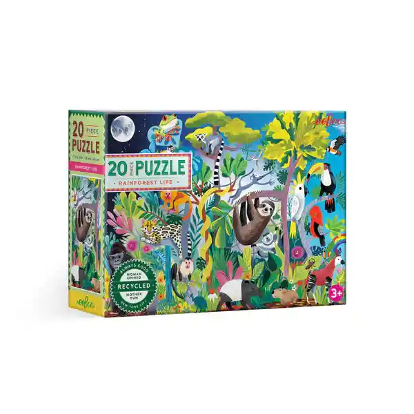 El rompecabezas de 20 piezas Rainforest Life es una forma colorida de estimular el interés de los niños en perezosos, pájaros, lémures, reptiles y otros animales maravillosos que viven en el entorno de la selva tropical. Perfecto para mayores de 3 años con sus piezas de rompecabezas gruesas y de tamaño gigante. Fomenta la coordinación óculo-manual, la motricidad fina y la resolución de problemas. Los rompecabezas son el proyecto perfecto para niños y para actividades familiares. ¡Los niños se sienten desafiados por la tarea y orgullosos de haberla completado! Ilustración por <span data-mce-fragment="1">Linda Bleck. Recomendado para 3 años y más. Tamaño puzzle: 28 x 38 cms. eeBoo es un fabricante boutique de juguetes que se especializa en juguetes educativos y regalos útiles, lindos y de muy buena calidad. eeBoo crea novedosos juguetes y regalos que son 100% originales (sin licencia) y cuyos diseños proveen de queridos y conocidos ilustradores de libros para niños. Mucho de los juguetes y actividades se basan en formatos antiguos que eeBoo reinventa con arte y diseño colorido y contemporáneo.