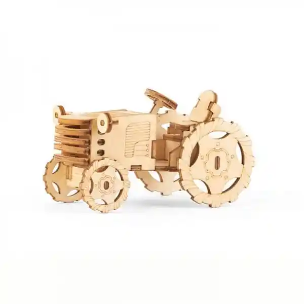 Manera desafiante y creativa de pasar el tiempo. Puzzle 3d hecho de madera con forma de tractor.
