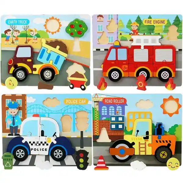 Regalo fantástico: los rompecabezas de Veiculos de madera son maravillosos regalos para niños y niñas, perfectos para días festivos como Navidad, eventos Respetuoso con el medio ambiente y seguro: los bordes de los juguetes de aprendizaje de formas son redondeados, lo que garantiza la seguridad de las manos Juguete de aprendizaje Montessori: el rompecabezas 3D ayuda a desarrollar habilidades cognitivas a medida que los niños aprenden a resolver rompecabezas, Aprende jugando: cada rompecabezas de Vehiculo de madera tiene el tamaño perfecto para que los agarren las manos pequeñas. Las lindas formas de Autos