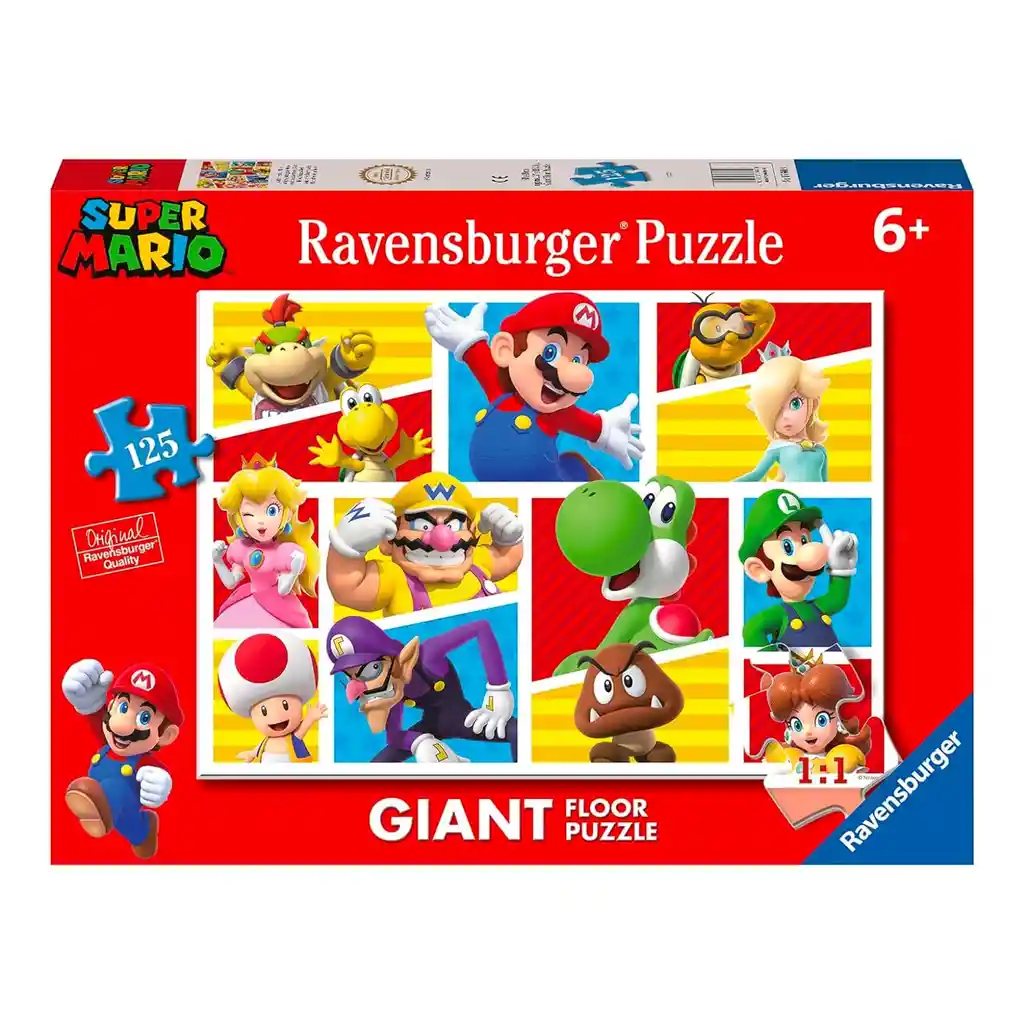 Puzzle 125 piezas Super Mario de Ravensburger. Ravensburger es calidad para entendidos: Piezas siempre diferentes de encaje perfecto, acabado especial antirreflectante, robustez a prueba de error y cuidado del ambiente gracias al amplio uso de material reciclado.