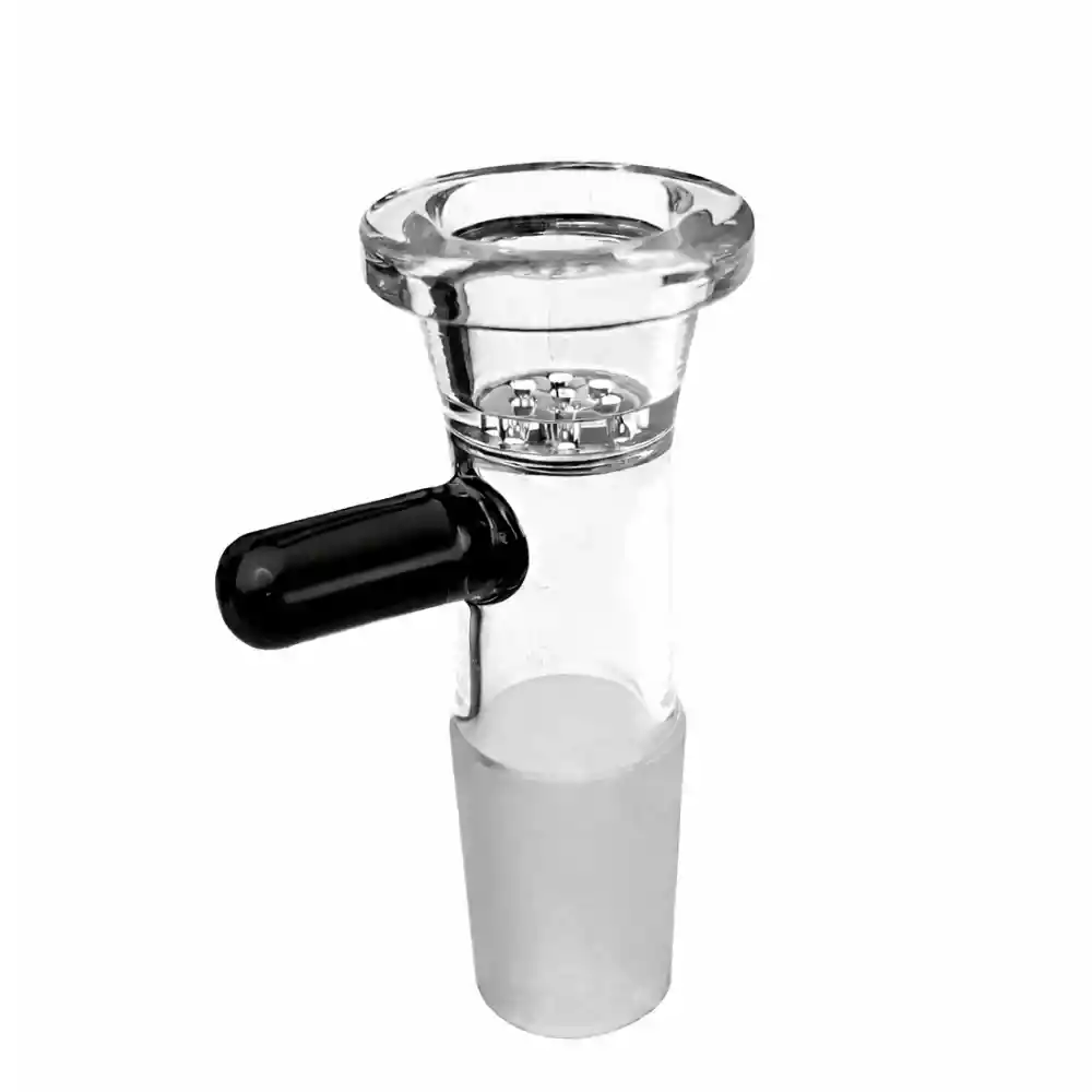 Quemador Honeycomb Genérico 14 mm Quemador de vidrio con base tipo panal que distribuye el flujo de aire de forma uniforme, ayudando a una combustión más pareja. Incluye asa lateral para manipulación cómoda y es compatible con bongs estándar de 14 mm.