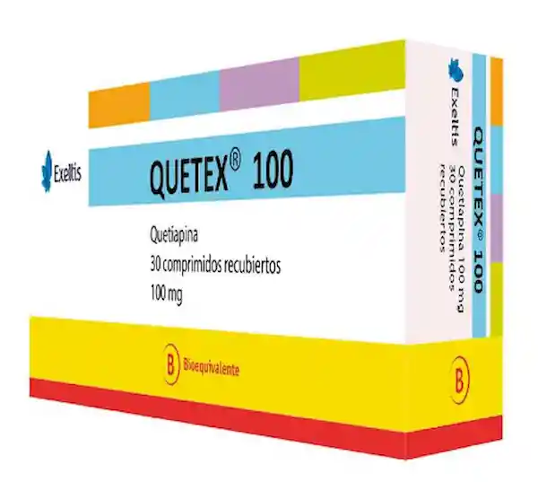 Principio activo: quetiapina (100 mg). Vía de administración: oral. Indicado en el tratamiento de la esquizofrenia y el trastorno bipolar. packing: Caja