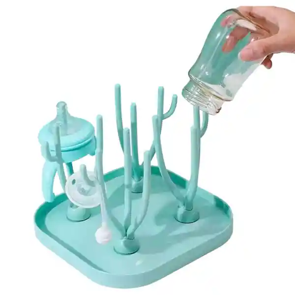 Hecho de plástico de alta calidad, este escurridor es duradero y resistente. Además, es fácil de limpiar y es apto para lavavajillas. El diseño compacto y portátil te permite llevarlo fácilmente a cualquier lugar, ya sea en casa o de viaje. El escurridor cuenta con un diseño innovador que permite colocar los biberones y accesorios de alimentación de manera segura y estable, evitando que se caigan o se dañen. Además, el escurridor cuenta con varios compartimentos que ayudan a mantener los accesorios organizados y fácilmente accesibles. Nuestro escurridor de biberones es perfecto para los primeros meses de vida del bebé, cuando están aprendiendo a comer por sí mismos. Al usar este escurridor, notarás una gran diferencia en la comodidad y seguridad del bebé al comer, además de tener todo bien organizado y limpio.