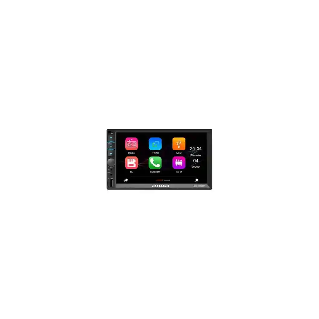 Con su gran pantalla táctil de alta resolución, puede acceder fácilmente a toda su música, navegación y otras funciones. La tecnología Mirrorlink incorporada le permite conectar su teléfono inteligente a la radio, para que pueda usar las aplicaciones y funciones de su teléfono en la pantalla de la radio además con su potente sistema de sonido Aiwa, puedes disfrutar de tu música con una claridad asombrosa Características del Producto Receptor 2 Din Mirrorlink telefónico a través de USB Compatible con Carplay Android/ Carplay Pantalla LCD TFT 7'' HD Resolución 1024x600 Pantalla táctil Reproducción de video MP4 Resolución de video de hasta 1080p Iluminación LED RGB de 7 colores Bluetooth 4.0 Radio FM con Sintonizador digital / 18 FM Acceso a la agenda telefónica, muestra información y contactos de identificador de llamadas Salida de audio RCA Pre-amplificada 2V delantero y trasero Salida de audio RCA Pre-amplificada 2V de Subwoofer Salida de video RCA para sistemas de video en asientos trasero Soporta imágenes JPEG, GIF, PNG desde USB/SD Ecualizador de audio digital Reproductor de audio MP3 y WMA Interfaz de programación de control al volante Entrada auxiliar de audio y video 4x50W Control remoto incluido