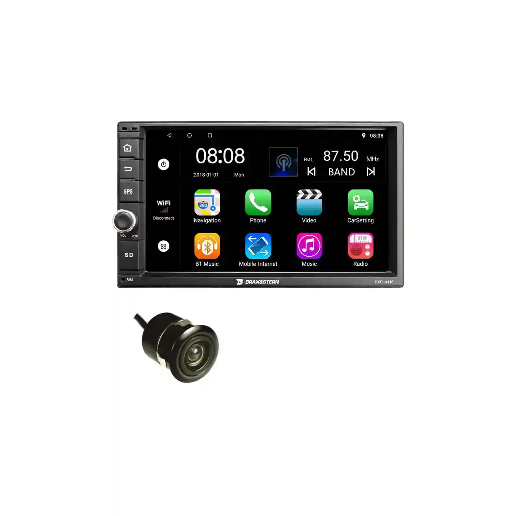 El Brax&Stern BXS-4116 es la manera perfecta de hacer que sus viajes por carretera sean más agradables tiene una pantalla grande de alta resolución que facilita ver el mapa y rastrear la información; también cuenta con un potente amplificador que te brindará una gran calidad de sonido, incluso a volúmenes altos. Con Brax&Stern BXS-4116, puede convertir su automóvil en un centro de entretenimiento móvil nunca más te aburrirás en un viaje por carretera Características del Producto Marca BRAX&STERN Modelo BXS-4116 Otros Con GPS Sí Con puerto USB Sí Con Bluetooth 2 Puertos USB Con pantalla táctil Sí Memoria RAM 1 GB Almacenamiento interno 16GB Pantalla Full Táctil TFT LCD 7'' HD Procesador 1.6GHz A7 Cortex Quad Core Compatible con control al volante Resolución 1024x600 Potencia 50w x4 Wifi y GPS integrado Reproductor MP3/ MP4/ MP5 Sintonizador electrónico FM Entrada para cámara de reversa Entrada y salida de Audio/Video Salida RCA para Subwoofer Compatible con Smartphones Android/ IPhone