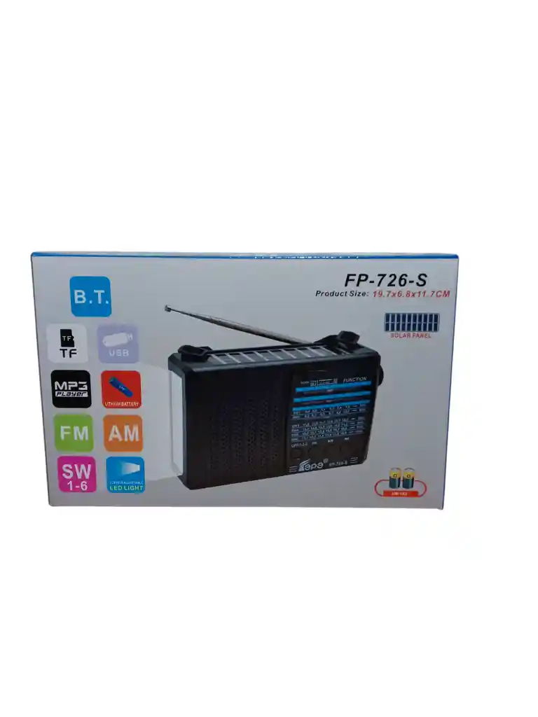 Radio solar recargable , tambien a pilas bluetooh mp3 Fm - Am tarjeta sd linterna 3 potencias