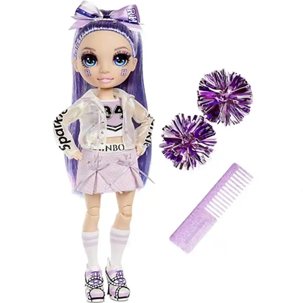 Violet Willow, ahora viene con un uniforme de porrista glamoroso que refleja su personalidad de diva. Ella también tiene un peinado de cola de caballo con un lindo lazo y pasador. Ella está completamente articulada y posable. Su cabello también presenta un lazo y un pasador de animadora. Sus brazos y piernas se doblan para tantas poses glamorosas. Cuando desempaquete la muñeca por primera vez, lávele bien el cabello para quitarle el gel de peinado, aplique un poco de champú o jabón para lavar platos para eliminar cualquier producto o residuo. Esto es opcional, pero para suavizar aún más el cabello, agregue un poco de acondicionador, aplique con los dedos o peine el cabello y luego enjuague. Deje que el cabello se seque al aire por completo. El cabello está listo para cepillar y peinar. Incluye, muñeca de moda, atuendo de animadora, 1 par de zapatos de animadora, calcetines de animadora, pompones, accesorios para el cabello y cepillo para el cabello. Se recomienda de 3 años en adelante, contiene piezas pequeñas.