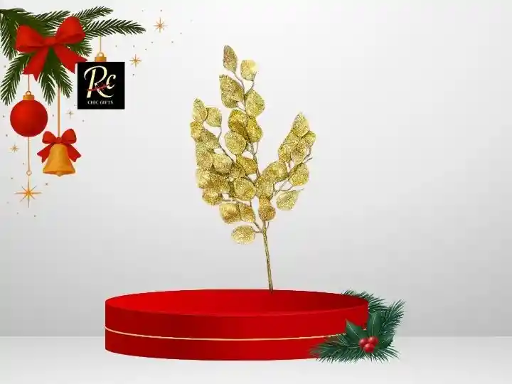 Embellece tus decoraciones festivas con esta rama decorativa dorada de hojas doradas con brillos. Perfecta para añadir un toque de lujo y brillo a tu hogar, ideal para adornos de Navidad y decoraciones de fiestas.