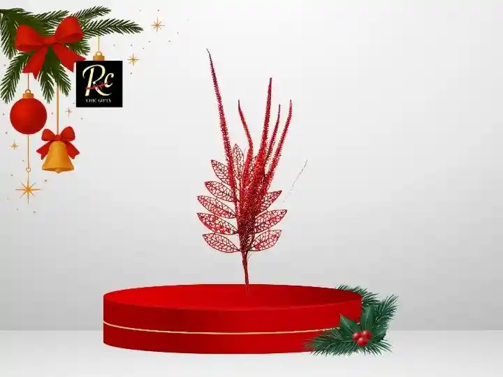 Añade un toque elegante y festivo a tus decoraciones con esta rama decorativa roja con finas hojas rojas y brillos. Perfecta para embellecer tu hogar durante la temporada navideña, aportando un toque de sofisticación y resplandor.